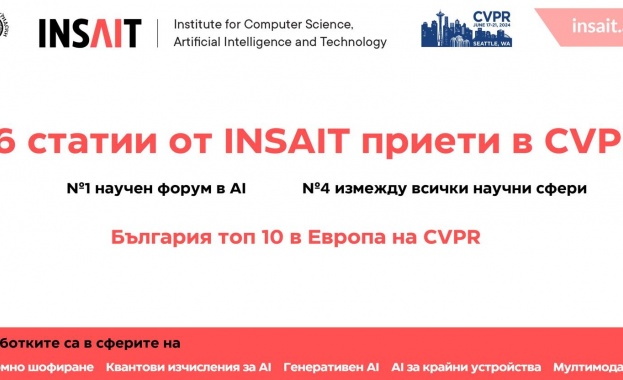 /КРОСС/ Българският институт INSAIT направи исторически пробив с 16 статии на конференцията CVPR - най-цитираният форум за изкуствен интелект и компютърно зрение в света. Този успех е безпрецедентен за страната ни в тази сфера и ни нарежда в топ 10 в Европа.