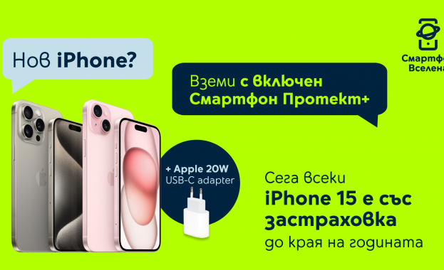 /КРОСС/ До края на май Yettel предлага всички модели iPhone 15, iPhone 15 Plus, iPhone 15 Pro и iPhone 15 Pro Max със застраховка „Смартфон протект+" до края на годината и оригинален 20W USB-C адаптер без допълнително заплащане. Смартфоните могат да се закупят от магазините на оператора и от Yettel.bg с двугодишен абонамент за мобилните планове Total Unlimited, които също са в промоция през май - 50% отстъпка от таксата за първите шест месеца от абонамента.