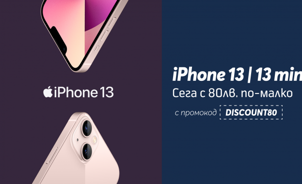 Всички варианти на iPhone 13 и 13 Mini с 80 лв. отстъпка в онлайн магазина на Теленор