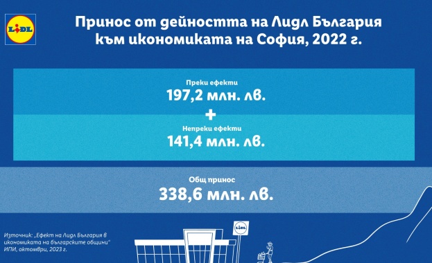Така съвкупният принос от преки и непреки ефекти на Лидл България към икономиката на София само за една година достига близо 338,6 млн. лв.