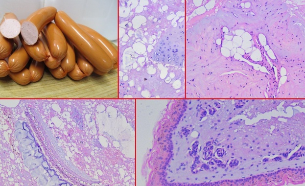"Детето ми обича кренвирши. Реших да видя какво всъщност има в тях" - започва своя разказ в картинки член на групата MU-Sofia Pathology. Сред находките в малотрайния колбас, освен от 1 до 15% месо, под микроскопа се виждат мастна тъкан, хрущяли, кожа, части от артерии, нервни влакна, растителни семки и клетки, големи участъци от мазнина и вода, протеини с неясен произход.