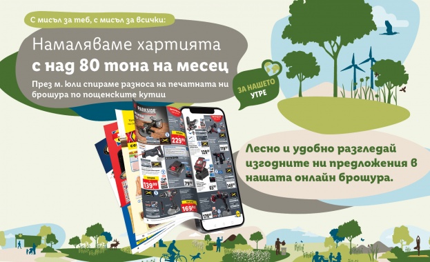 /КРОСС/ Лидл България ще намали употребата на хартия с над 160 тона, като спре разпространението на хартиената си брошура в девет населени места през юли и август. Инициативата е част от цялостната стратегия за устойчиво развитие, с която веригата от години прилага мерки за съхранение на ресурсите, включително и на хартията като ценна суровина.