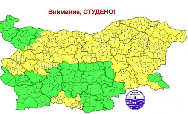 Жълтият код е в сила за: Перник, София-област, София-град, Враца, Плевен, Ловеч,Габрово, Велико Търново, Сливен, Ямбол, Бургас, Смолян, Варна, Добрич, Силистра, Русе, Разград, Шумен, Сливен, Търговище.