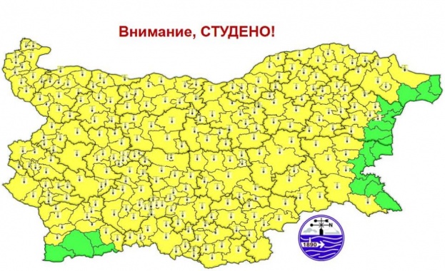 /КРОСС/ От днес започва период без валежи, но с ледени дни, обявен е жълт код за потенциално опасно време и много ниски температури в цяла България, сочи прогнозата на Националния институт по метеорология и хидрология (НИМХ).