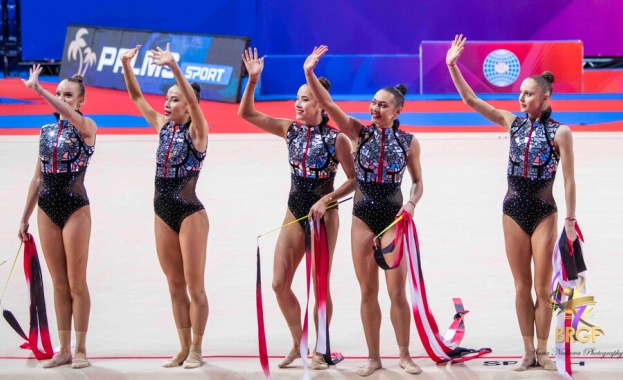 /КРОСС/ Ансамбълът на България спечели шампионска титла в многобоя на Световната купа в Баку. София Иванова, Рейчъл Стоянов, Алина Коломиец, Сузан Пуладиан, Даная Атанасова и Виктория Георгиева представиха отлично своите композиции в азербайджанската столица. И със сбор от 53.400 (25.150 на 5 ленти и 28.250 на 3 топки + 2 обръча) заслужено се окичи със златния медал в многобоя, пише Gong.bg.
