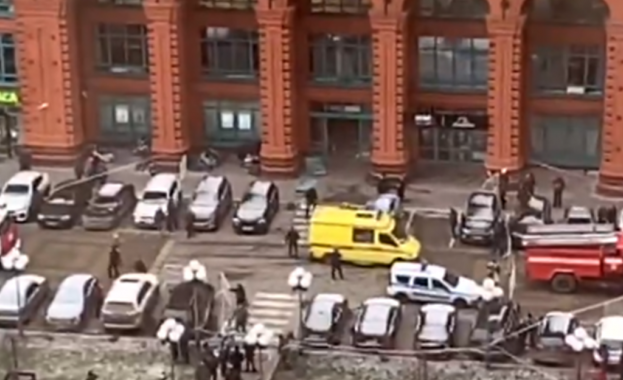 Според тях бомбата е избухнала, точно когато един от живеещите в сградата влизал вътре с охраната си, твърди руският Telegram канал 112.