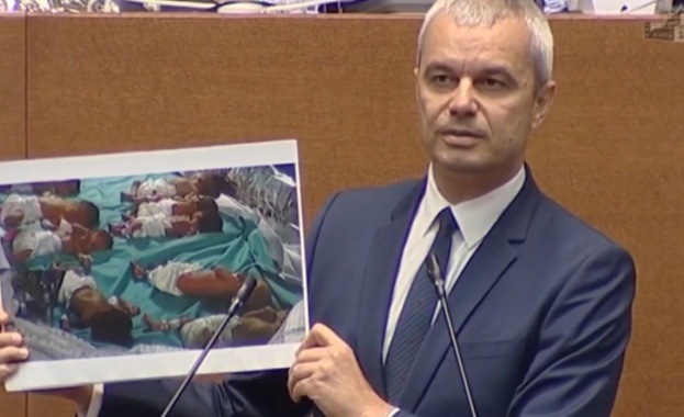 /КРОСС/ Днес, от трибуната на Народното събрание, председателят на „Възраждане" Костадин Костадинов показа спиращи дъха снимки на деца, пострадали от войната в Газа, като част от реч, в която остро критикува ръководството на Народното събрание за отказа да се организира изложба, показваща палестинската гледна точка за конфликта. Той изрази възмущение от двойнствения стандарт при отразяването на войната в Близкия изток.