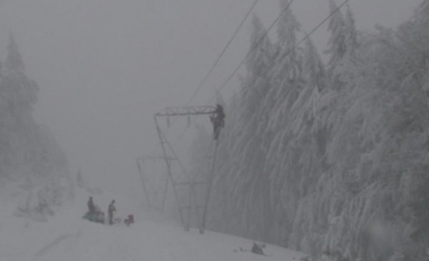 Заради мокрия сняг и скъсаните електропроводи без захранване са 65 населени села в Североизточна България.