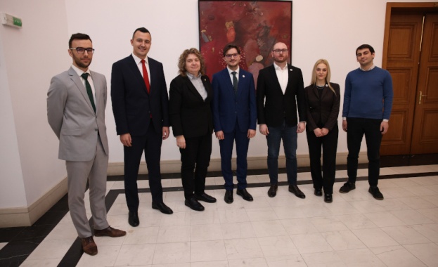 /КРОСС/ Председателят на Народното събрание Наталия Киселова разговаря с членове на ръководството на Националния младежки форум. В срещата, която беше по искане на представителите на най-голямата младежка платформа в България, участва и председателят на парламентарната Комисия по въпросите на младежта и спорта Габриел Вълков.