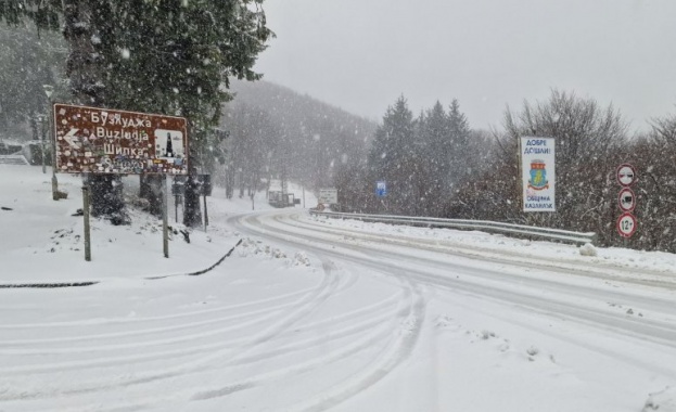 В прохода Шипка вали сняг, на места видимостта е ограничена поради снегонавявания