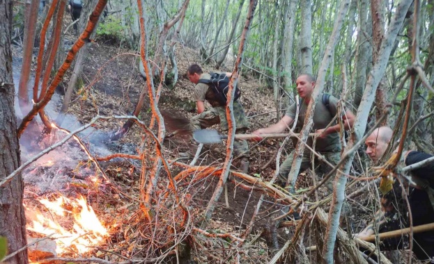 Военнослужещи продължават да оказват помощ за овладяването на пожара в планината Славянка