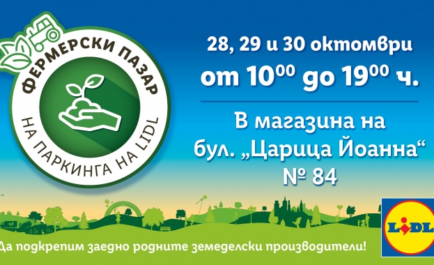 /КРОСС/ Този уикенд, 28 - 30 октомври, от 10.00 до 19.00 ч., на паркинга пред магазина в столичния ж.к. Люлин, бул. Царица Йоанна №84, ще се проведе дванадесетият традиционен фермерски пазар на Lidl. На него посетителите ще могат да открият любими родни вкусове, да се подготвят за студените месеци с вкусна зимнина, както и да си купят нетрадиционни предложения като сладко от чесън или натурална козметика с лавандула.