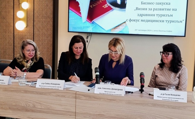 /КРОСС/ Три организации обединяват усилия за развитие на здравния туризъм в България с подписването на меморандум за сътрудничество. Това са Асоциацията по физикална медицина и рехабилитация (АФМР), Българският съюз по балнеология и спа туризъм (БСБСПА) и Българска болнична асоциация (ББА). Подписването на документа се случи по време на бизнес закуска на тема „План за развитие на здравния туризъм с фокус медицински туризъм", организирана от БСБСПА в партньорство с ББА и с институционалната подкрепа на Министерство на туризма.