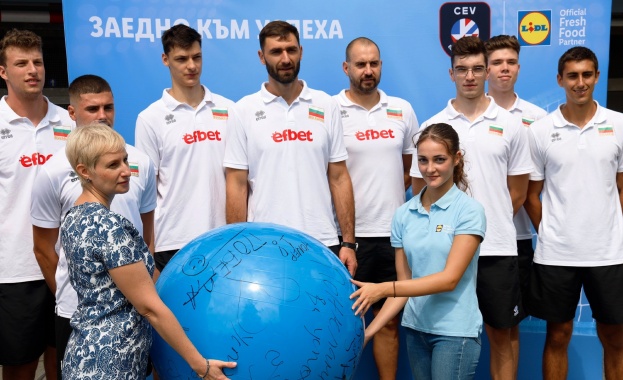 /КРОСС/ На специално събитие във Варна Lidl пожела успех на българските национали по волейбол преди старта на предстоящото Европейско първенство за мъже. Lidl изненада състезателите на Пламен Константинов с голяма топка талисман, специално подписана от най-запалените им фенове. Получиха я Цветан Соколов, Алекс Николов, Алекс Грозданов, Георги Братоев, Аспарух Аспарухов и Денис Карягин, които присъстваха на събитието. Топката ще носи късмет на играчите в предстоящите им мачове. България започва участието си на Европейското първенство на 29 август в Двореца на културата и спорта във Варна.