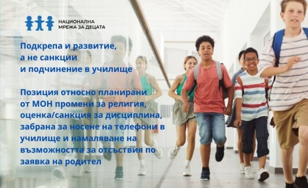 /КРОСС/ Национална мрежа за децата, граждански организации, граждани и активисти изразяваме силното си притеснение относно изказванията на министъра на образованието за планирания пакет санкциониращи мерки в училищното образование: оценка/санкция за дисциплина, пълна забрана за носене на телефони в училище и намаляване на възможността за отсъствия по заявка на родител (по семейни причини), одобрена в момента на 15 дни годишно. В допълнение на това се предлага и въвеждането на религия като отделен и задължителен предмет.