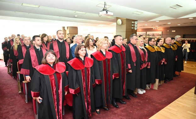 Проф. д-р Димитър Димитров открои успехите на Юридическия факултет и награди двата отбора по право - победителите в състезанието по международно публично право - Николай Бошнаков, Бояна Иванова и Евгения Личева, които спечелиха приза „Spirit of Jessup", и победителите, участвали в световното състезание по международен търговски арбитраж Willem C. Vis - Елина Костадинова, Далиа Давидкова, Габриела Николова, Радослав Кръстанов.