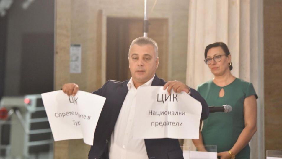 В началото на събитието Ангелов застана пред трибуната с урните и попита членовете на ЦИК „кога ще спрат гласовете от Турция". Той държеше в ръце и два листа с надписи: „Спрете секциите в Турция" и „ЦИК - национални предатели".
