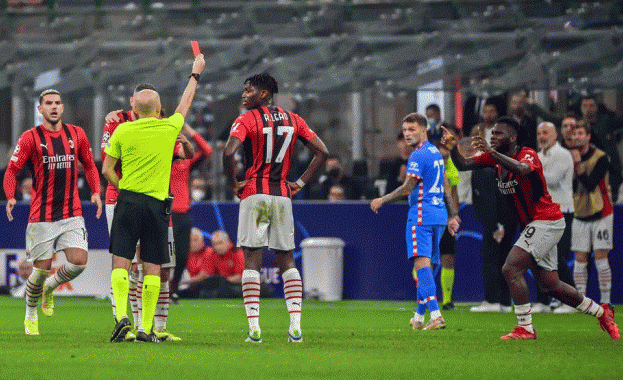 /КРОСС/ Атлетико Мадрид обърна Милан с 2:1 в изключително драматичен мач от втория кръг в група "В" на Шампионската лига. "Росонерите" бяха близо до първата си победа в турнира след пауза от 7 години, но допуснаха два късни гола, дело на Антоан Гризман и Луис Суарес от спорна дузпа. За домакините точен беше Рафаел Леао в 20-ата минута, но малко по-късно Франк Кесие получи червен картон и принуди съотборниците си да играят с човек по-малко повече от час.