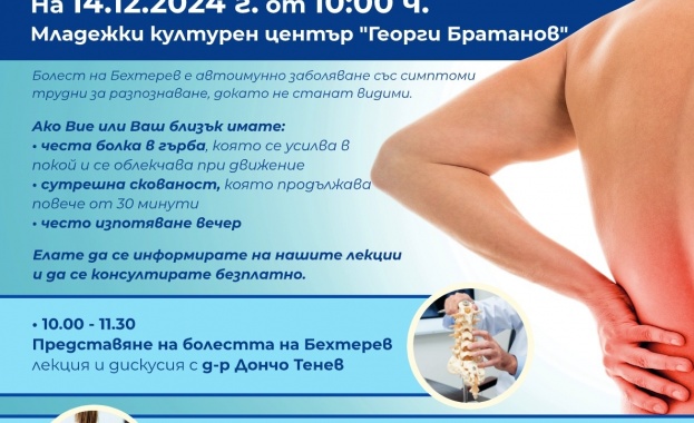 Болестта на Бехтерев във фокуса на информационен ден на 14 декември в Ямбол