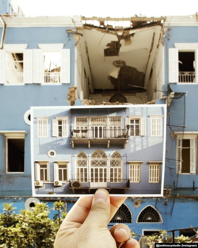 Когато след взрива тръгват към двата историческа квартала, носят със себе си 30 снимки от тяхната поредица "Къщите на Бейрут". Обикаляйки развалините, успяват да открият 25 от сградите и до всяка от тях оствят по една картичка, като напомняне как е изглеждала преди.