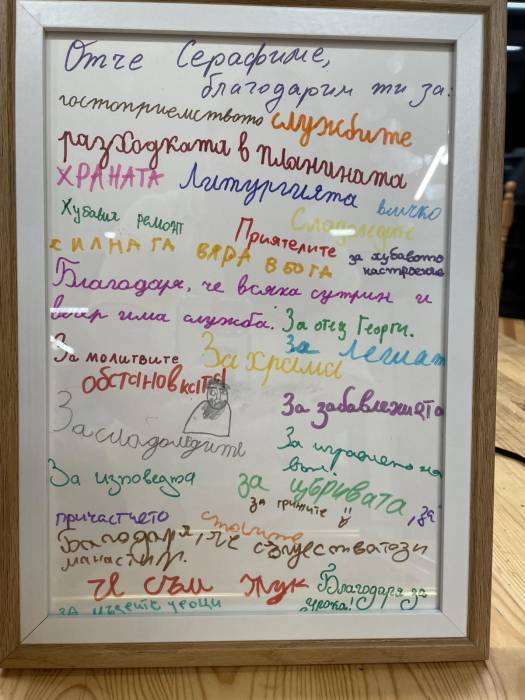След това децата поднесоха своите благодарности към о. Серафим, които бяха написали, както и иконата на св. Богородица, която изработиха.