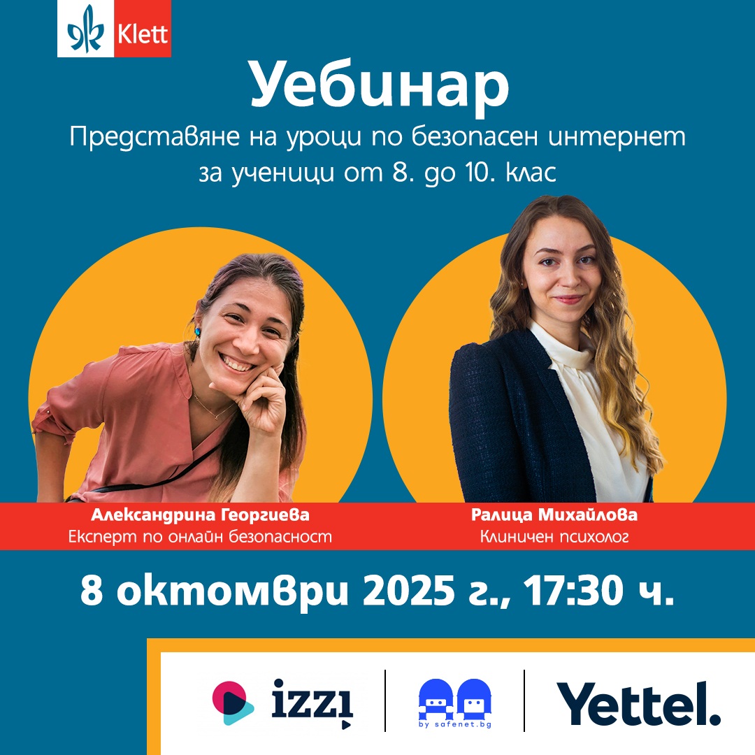 Предстоящите онлайн срещи за представяне на разработените образователни материали са част от програмата „Безопасен интернет и развитие на дигиталните умения" на Yettel, посветена на подкрепата на дигиталната грамотност.