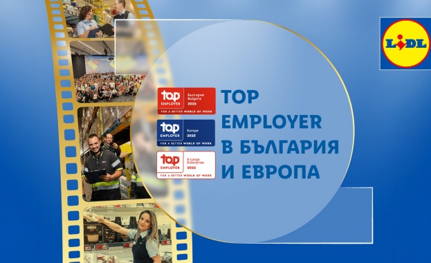 /КРОСС/ Лидл България получи за шести пореден път признание за работодателските си практики и е отличен с престижния сертификат Top Employer в България и Европа от водещата международна организация TOP Employers Institute. Постигнатият от компанията общ резултат е по-висок със 7.8% от средния резултат на всички ТОП работодатели от цял свят и с 11% над средния за ритейла в Европа.