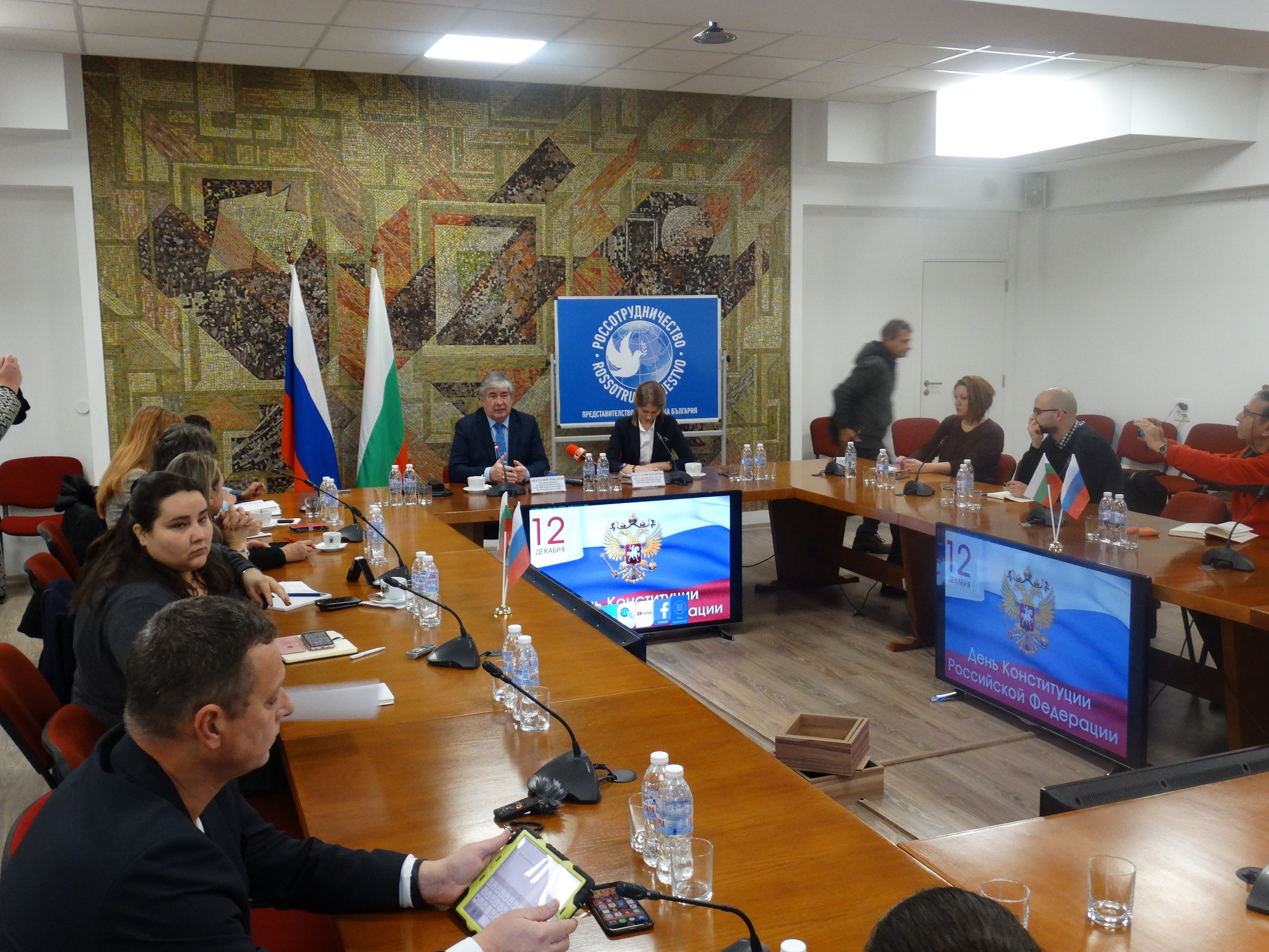 "Днес е един паметен ден за нас, видяхте изложбата при влизането в залата. Руската Федерация отбелязва 25 години от приемането на Руската конституция", отбеляза н. пр. Макаров.