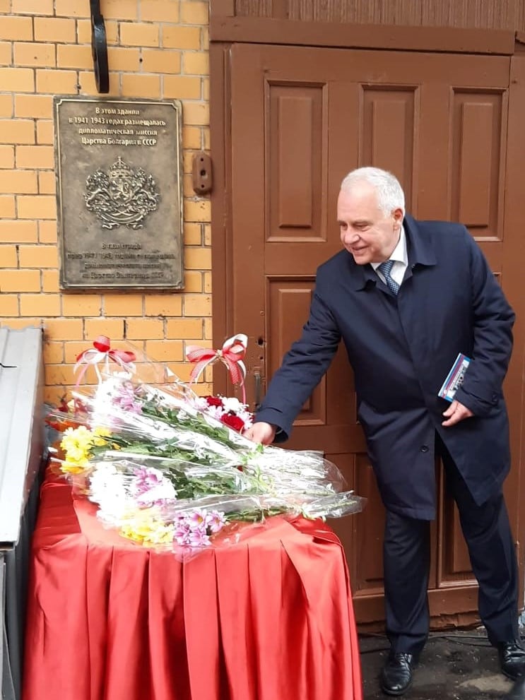 Поставянето на паметната плоча е част от инициативите за отбелязване на 140-та годишнина от установяването на дипломатически отношения между Република България и Руската федерация.
