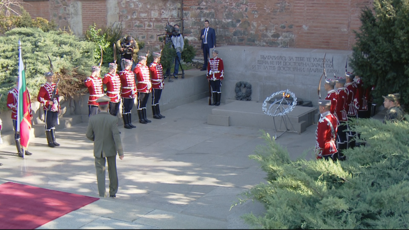Президентът прие почетния строй на представителните части на Българската армия и поднесе венец пред Паметника на незнайния воин, след което се състоя тържественият марш на представителните роти на въоръжените сили.