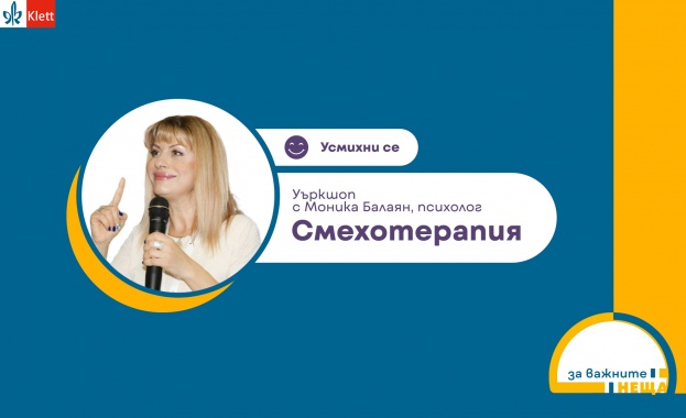 /КРОСС/ На 1 март от 18:30 ч., по време на уъркшоп „Смехотерапия“, психологът Моника Балаян ще разкрие как да използваме природната ни способност да се смеем за подобряване на нашето здраве, емоционално състояние и яснота на мисълта. Онлайн събитието е организирано от издателство Клет България в рамките на кампания „За важните неща“, в подкрепа на техните клиенти и партньори. Желаещите да се включат могат се регистрират за участие тук.