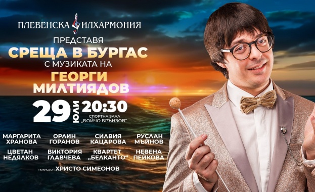 /КРОСС/ Днес, 29-ти юли, от 20:30 ч. в Спортна зала „Бойчо Брънзов" в Бургас, композиторът и диригент Георги Милтиядов обединява в мащабен концерт едни от най-известните и обичани български изпълнители. В концерта, с красивото заглавие „Среща в Бургас", солисти ще бъдат: Маргарита Хранова, Орлин Горанов, Силвия Кацарова, Руслан Мъйнов, Виктория Главчева, Квартет „Белканто", Невена Пейкова и много други.