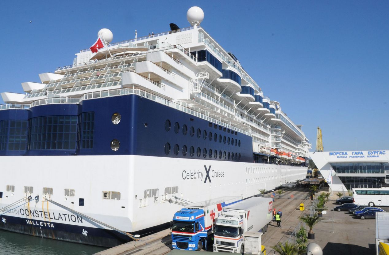 /КРОСС/ Първият круизен кораб акостира на откритата вчера международна морска гара в Бургас. На борда на "Селебрити Констилейшън" има 2000 пътници от цял свят и 1500 души екипаж. Плавателният съд е собственост на международната компания Royal Caribbean, a дължината му е 294 м.