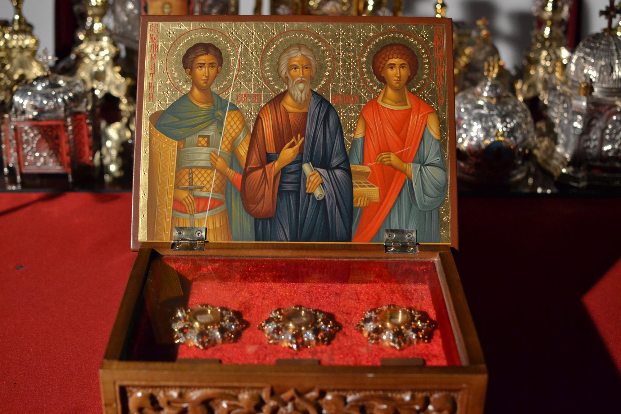 /КРОСС/ Бигорският манастир „Св. Йоан Кръстител" и неговият метох „Св. Георги" в Райчица получиха драгоценен дар от България - мощи на св. Димитрий, св. ап. Андрей Първозвани, св. Пантелеймон, св. Варвара и св. Екатерина.