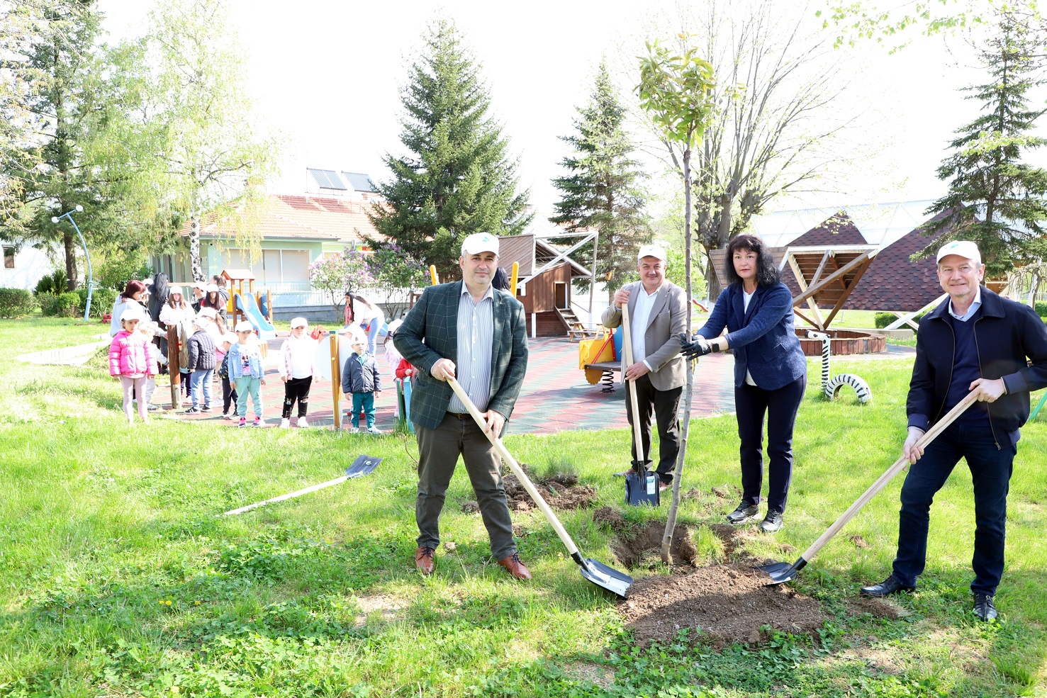 /КРОСС/ Инициативата „Нашето зелено утре" продължава с нови зелени проекти в община Чавдар. Поредният етап от кампанията се реализира в двора на детска градина „Щастливо детство", като в дейностите активно се включиха деца от една от групите и ученици от ОУ „Св. Св. Кирил и Методий", служители на Елаците-Мед и на община Чавдар.