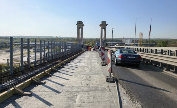 Продължава монтажът на пътните панели при основния ремонт на Дунав мост при Русе