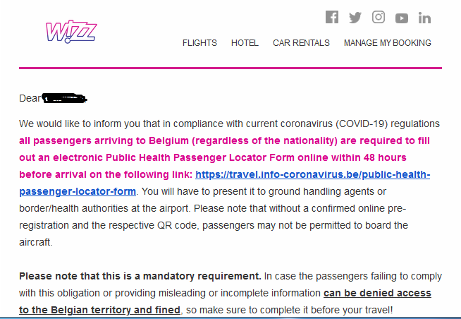 б.р. Проверка на редакцията показа, че със същия проблем по време на полета на Wizz Air за Брюксел на 5 януари 2021 г., са се сблъскали и 7 служители на българска транспортна фирма, които изобщо не са успели да излетят. Хората не са били допуснати на борда поради липса на електронно регистрирана ковид-декларация.