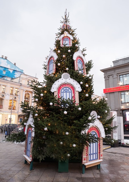 /КРОСС/ Новогодишни елхички, декорирани от руски дизайнери, бяха инсталирани на "Кузнецкия мост" в Москва, като част от фестивала "Пътуване до Коледа".