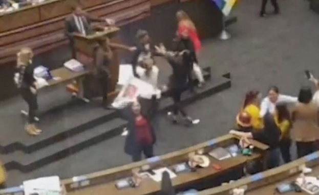 Когато шепа проправителствени депутати се опитаха да изтръгнат плакатите, между около 20 депутати избухна схватка, в която се разменяха удари в продължение на няколко минути, според снимки, излъчени в социалните мрежи.
