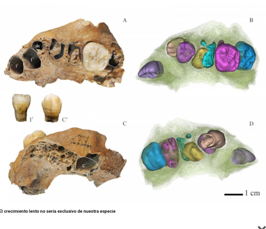 Фосилизираната горна челюст на детето на 6,5-годишна възраст включва 7 поникващи постоянни зъба. Изследването на вътрешната им структура с помощта на рентгенови лъчи показало, че първият постоянен зъб поникнал едва няколко месеца преди смъртта на детето. Макар че корените на някои зъби израствали по-бързо, отколкото у днешните хора, строежът на челюстта, общо погледнато, е характерен за Хомо сапиенс.