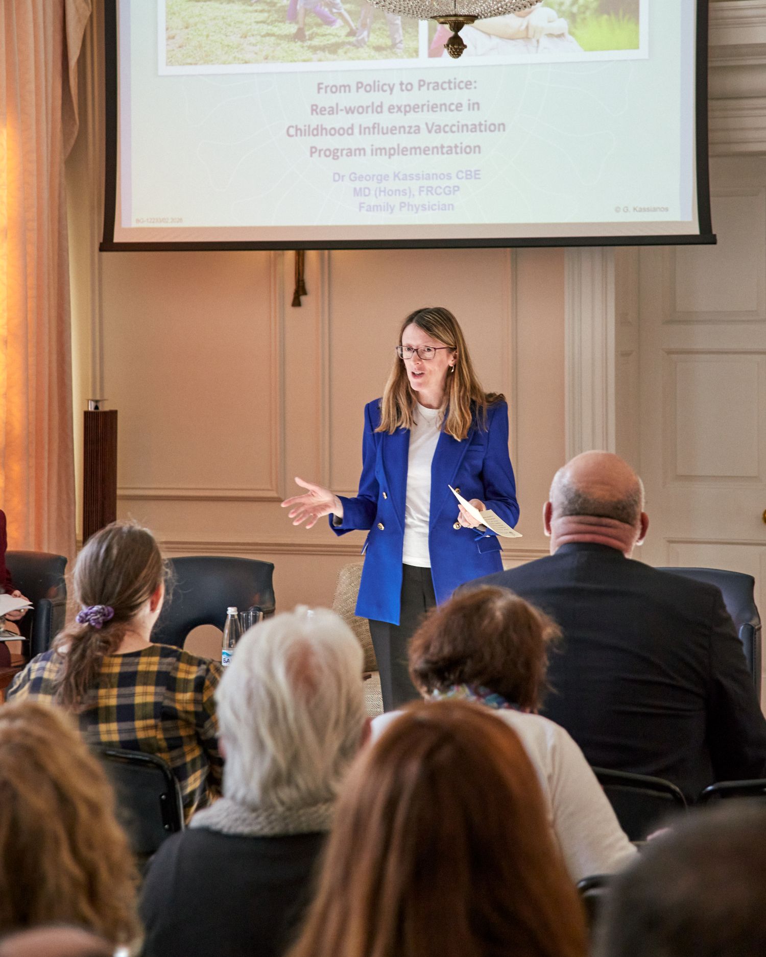 Подробни данни за опита на Великобритания представи специалният гост-лектор д-р Джордж Касианос, национален ръководител по имунизации към Кралския колеж на общопрактикуващите лекари във Великобритания от 1996 г. Данните сочат, че заболеваемостта от грип е най-висока при децата. Те са основният двигател на разпространението на сезонния грип в обществото и домакинствата, като увеличението на случаите при тях обикновено предшества това при възрастните.