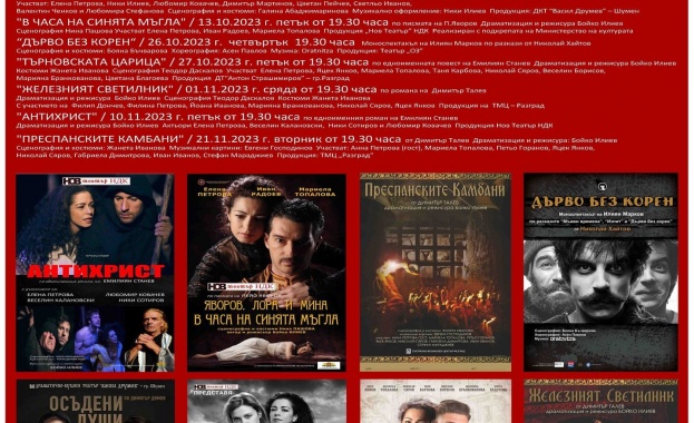 Програмата продължава и със заглавията "Осъдени души" от Димитър Димов на 04.10.2023 г., "В часа на синята мъгла" по писмата на П. Яворов на 13.10.2023 г., "Дърво без корен" по разкази от Николай Хайтов на 26.10.2023 г. и "Търновската царица" по едноименната повест на Емилиян Станев - 27.10.2023 г.,