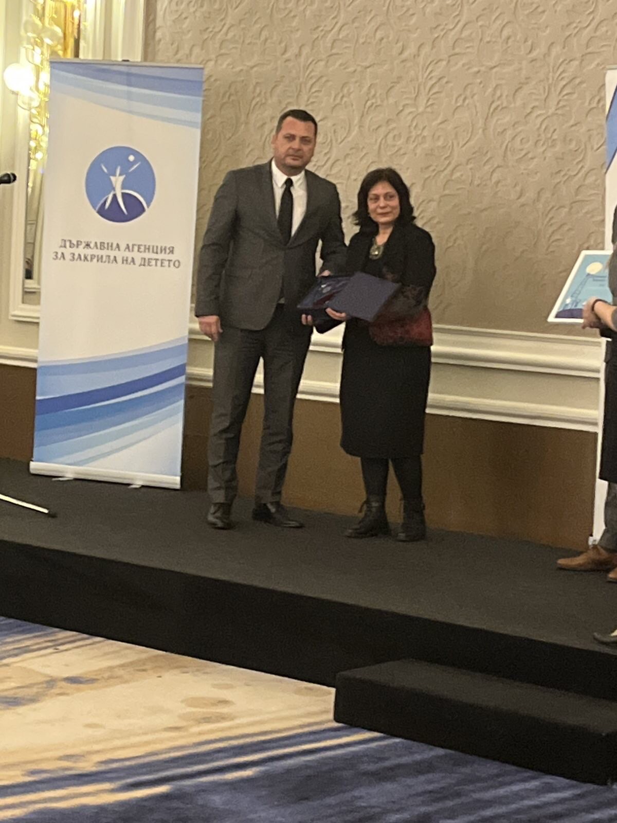 /КРОСС/ Председателят на Комисията по въпросите на децата, младежта и спорта в 47-то Народно събрание Иван Ченчев връчи приза "Посланик на доброто" на учениците от училище „Проф. Никола Маринов" в Търговище на церемония за третото издание на наградите, организирана от Държавната агенция за закрила на детето.