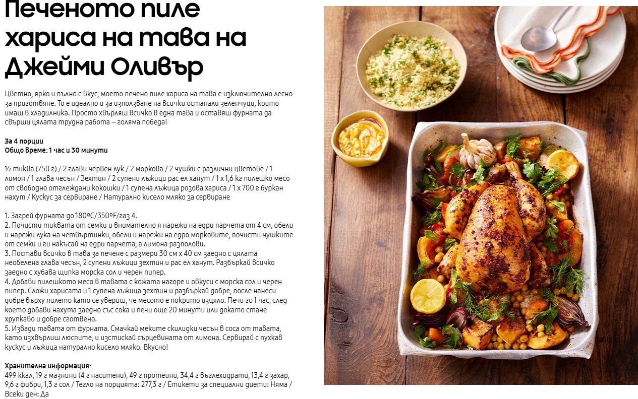 Рецептите могат да се видят и директно на моделите хладилници Bespoke AI на Samsung, които разполагат с 9-инчов дисплей AI Home или Family Hub, както и на JamieOliver.com.