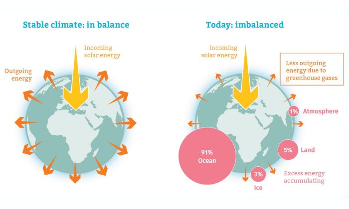 Количеството задържана енергия в системата достига рекордни стойности. Този дисбаланс стои в основата на останалите процеси - от затоплянето на океана до топенето на ледовете и промените в атмосферните модели.