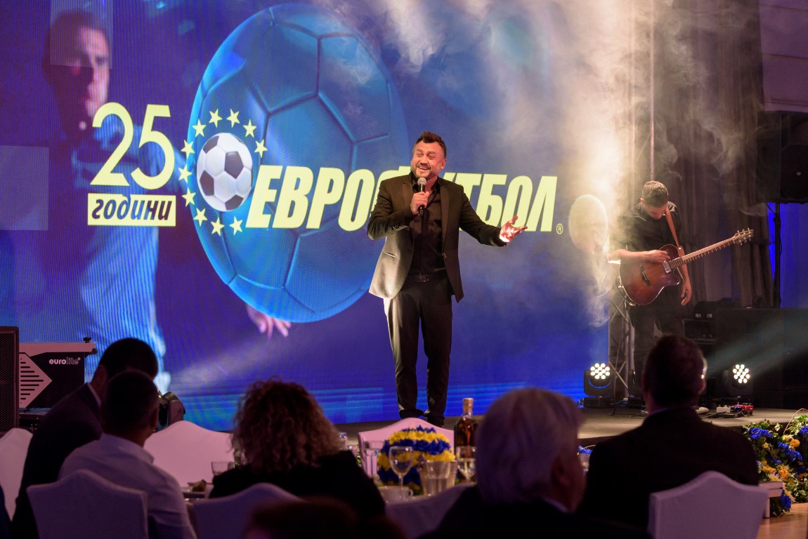 След разрязването на торта „25 години „Еврофутбол“ празненството продължи с много музика и танци, които включваха изпълнения на живо на един от най-обичаните български поп изпълнители Любо Киров и парти с диджей Радо.