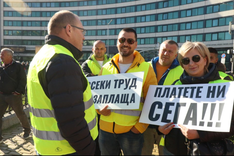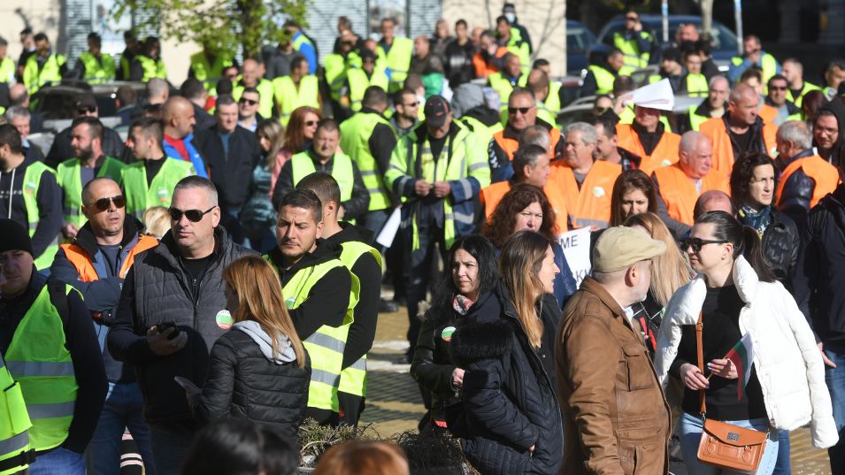 Пътните строители се събраха на протест пред Народното събрание (СНИМКИ)