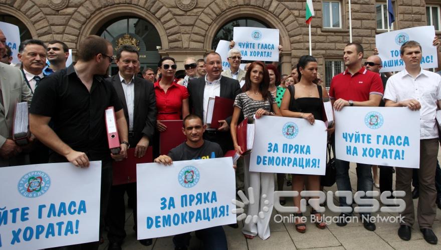 Председателят на БСП Сергей Станишев и членове на ИБ на БСП занесоха папките със събраните подписи за референдум за АЕЦ «Белене», до сграда на Народното събрание на пл. Княз Александър I