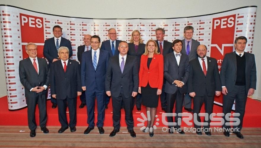 Президентът на ПЕС Сергей Станишев и правителствени лидери от левицата на координираща среща преди началото на Европейския съвет