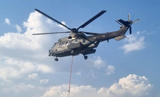 /КРОСС/ Хеликоптер „Кугар" с екипаж от 24-та авиационна база - Крумово и 45 военнослужещи с 8 специализирани машини от Сухопътните войски участват и днес, 30 юли, в гасенето на големите пожари в областите Благоевград и Хасково.